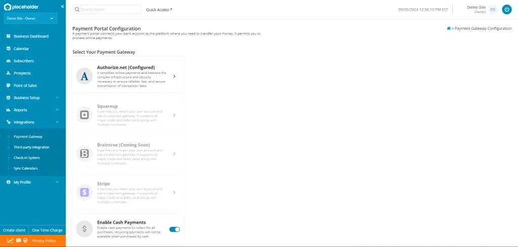 - Flexible Payment Processing: Integrates with multiple gateways and payment processors, offering your gym members a variety of payment options, including cash, credit card, and direct bank transfers. As a gym owner, you benefit from providing this flexibility while Buzops handles all the reporting and accountability, ensuring your finances are accurately managed without relying solely on payment gateway reports.